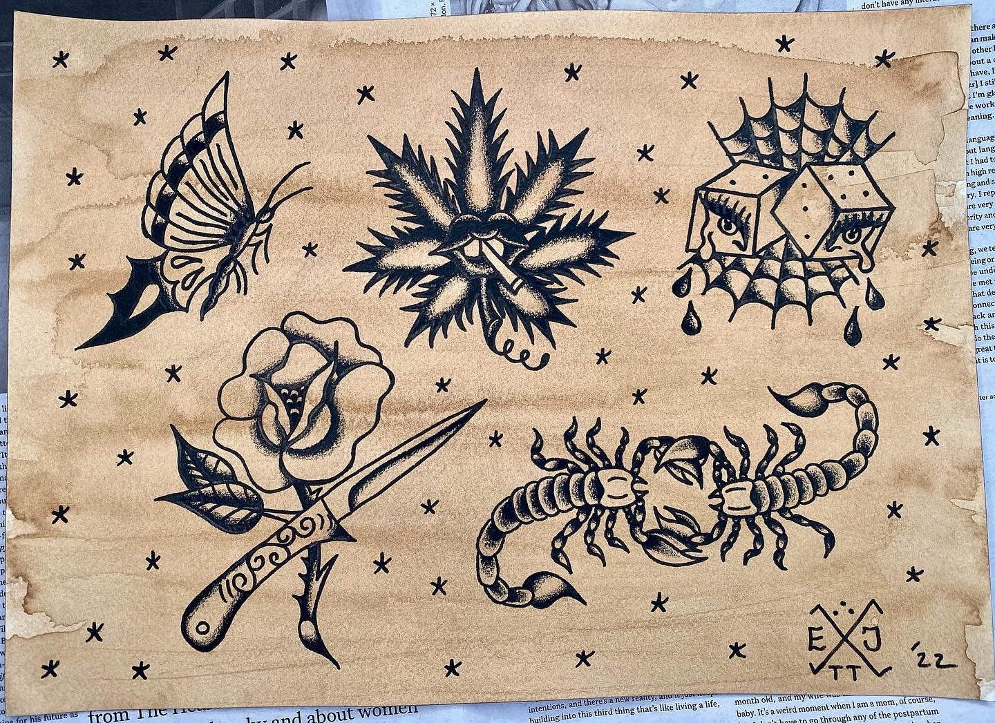Traditional Tattoo Flash Sheet Original Painting Etsy Australia