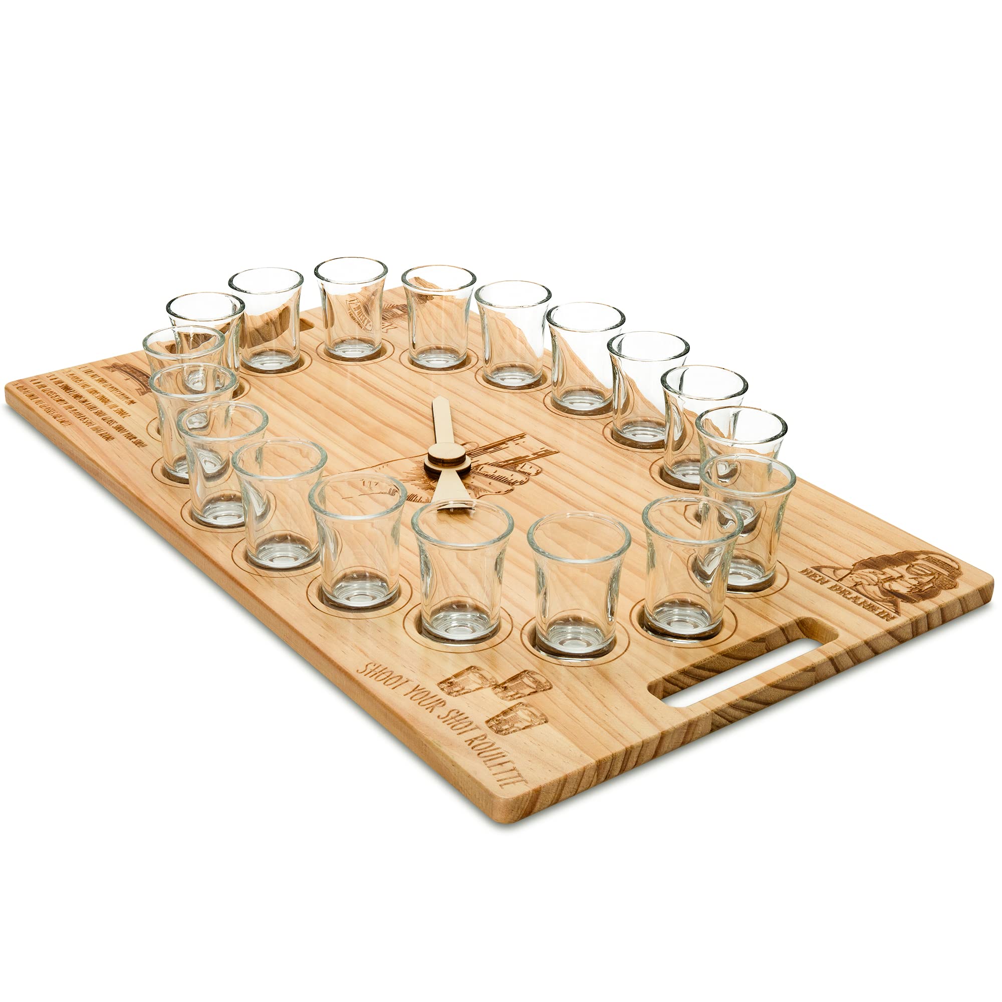 Shoot Your Shot Roulette Drinking Game For Adults Laser Engraved Solid Wood 18 Shot Glass Holder With Spin Wheel And Handles Adult Party Drinking Game For Game Night 2 10 Players